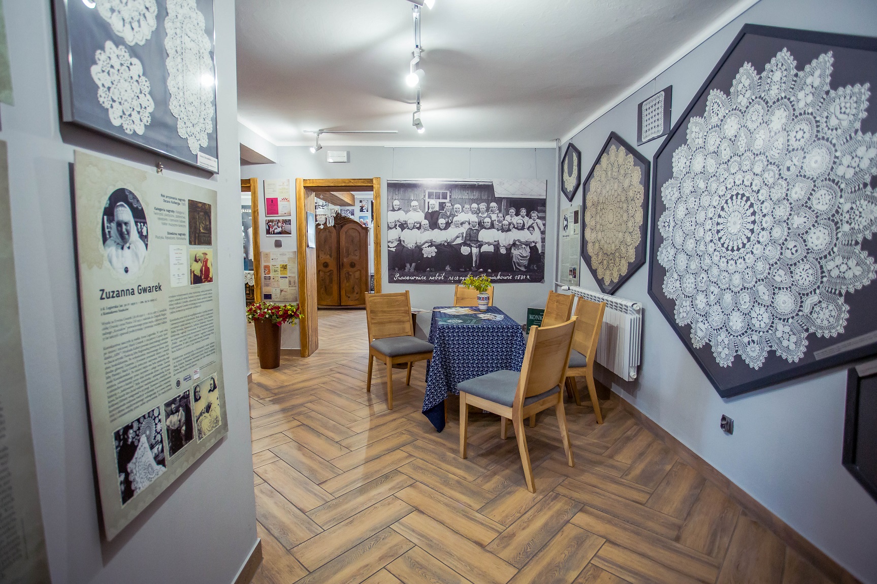 Wystawa w muzeum w bardzo ciekawy i nowoczesny sposób opowiada historię ponad stuletniej szydełkowej tradycji pielęgnowanej do dziś w Koniakowie. Prezentuje przepiękne serwety i inne tradycyjne wyroby z koronki koniakowskiej jednych z najznakomitszych koronczarek. Ekspozycja bogata w stare zabytkowe eksponaty wykonane przez już nieżyjące artystki, wzbogacona nowymi pracami pokazuje w bardzo interesujący sposób ciągle żywą tradycję w 2017 r. wpisaną na Krajową Listę Niematerialnego Dziedzictwa Kulturowego.