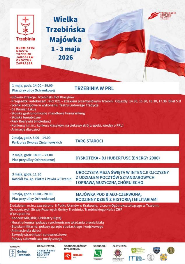 Zapraszamy do Trzebini na obchody majowe trwające od 1.05 do 3.05. 2026