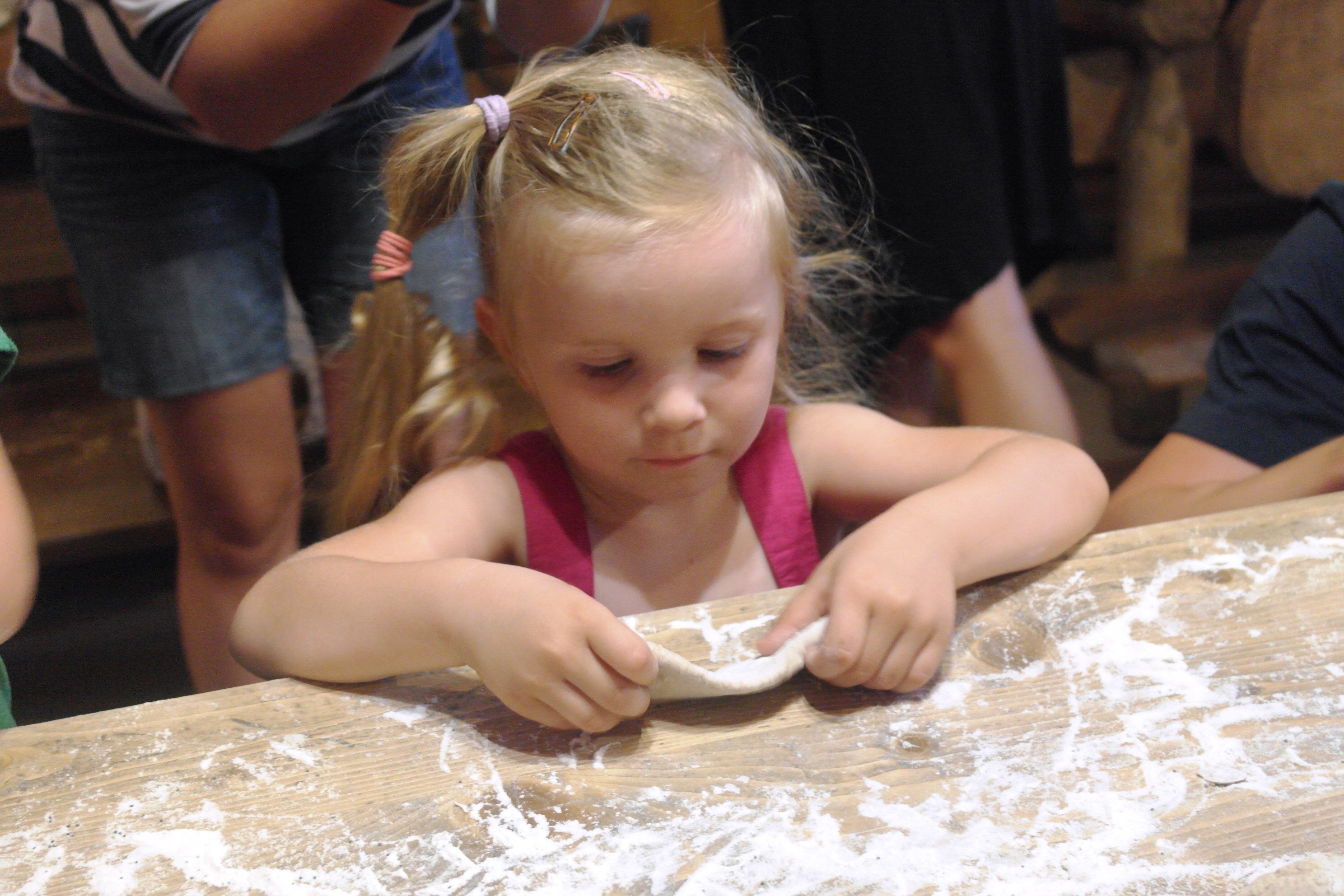 Ostatnim miejscem, które odwiedziliśmy tego dnia była Chlebowa Chata w Górkach Wielkich. Po raz kolejny nie tylko dzieci były zachwycone - w zaplanowanych warsztatach robienia przepysznych podpłomyków z zapałem brali udział i rodzice małych podróżników.